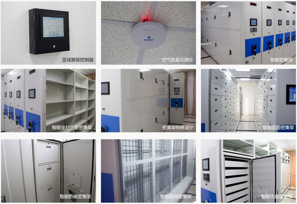 檔案館采用檔案庫房一體化解決方案,有效整合檔案存放環境智能管理、檔案存儲設備智能管理與實體檔案管理幾大系統。庫房實行分散控制、集中管理,智能調控庫房環境、自動調節庫房溫濕度、空氣質量,確保檔案存放環境的安全;從電子檔案到實體檔案的一體化管理,借助PDA、條碼掃描槍等實現檔案的無序存放、有序管理。各系統獨立運行又互相協作聯動運行,讓檔案庫房環境更舒適、檔案存放更安全、檔案管理更高效、人員身體更健康。